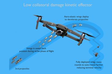We are developing a 12 gauge shotgun round counter drone technology sUAS effector that can be deployed in populated areas or near vulnerable equipment, ensuring low collateral damage and significantly reducing the risk of unintended impacts.